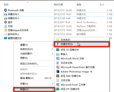 2、打开SendTo文件夹后,在该文件夹空白处右键“新建”—“快捷方式”,如图所示: