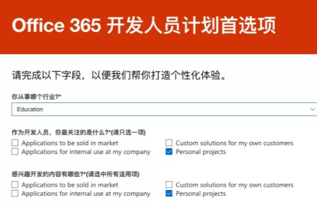 申请地址:https://dev.office.com/devprogram 点击立即加入后